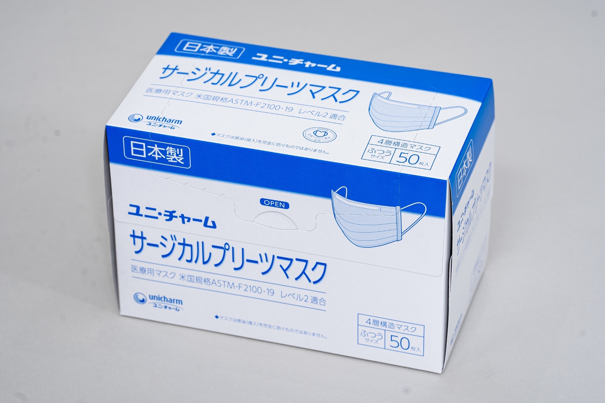 | ユニチャーム サージカルプリーツマスク(4層構造マスク) 50枚/箱 普通サイズ 医療用マスク 米国規格ASTM-F2100-19 レベル2適合品 | 箱 |
